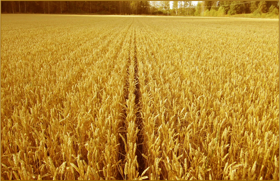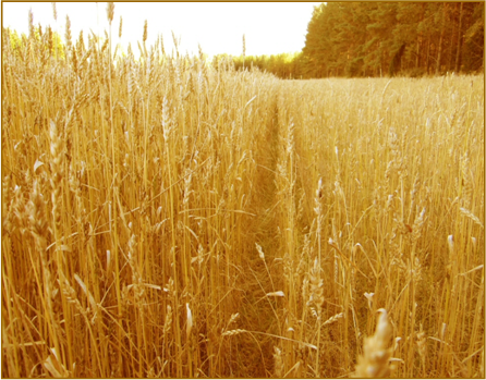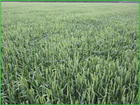 Viljelykokeen sivutuotteena tuli esille yllä olevan kuvan mukainen kasvusto, jossa viljelijä oli kylvänyt lohkon loput siemenet lähelle metsän reunaa, jossa myös lannoitteen käyttö oli jäänyt muuta lohkoa alemmalle tasolle. Rajan vasemmalla puolella kylvösiemenet olivat Kultakasvu Plus-tuotteella peitattuja ja oikealla puolella Kultakasvu Vehnä (myynnistä poistunut tuote) -tuotteella peitattuja. |